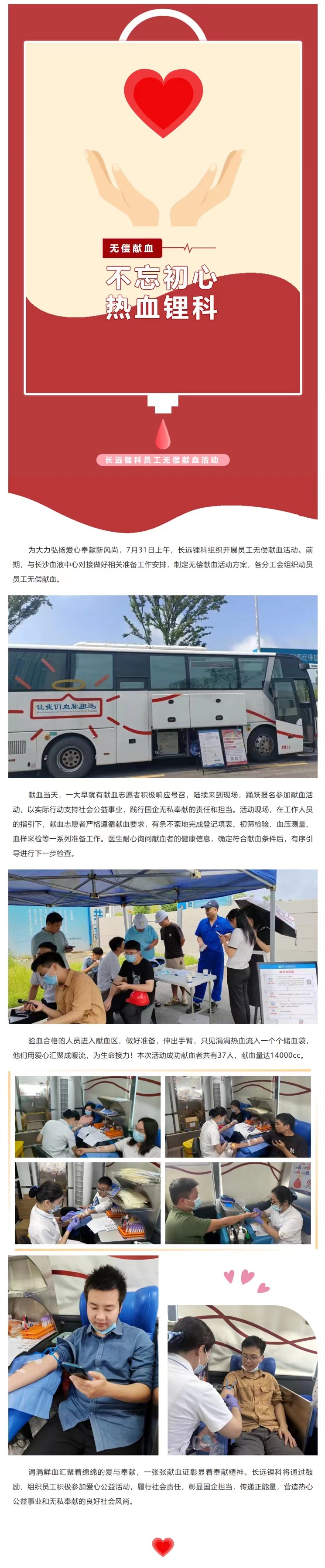 不忘初心 熱血鋰科 —— 長(zhǎng)遠(yuǎn)鋰科開展員工無(wú)償獻(xiàn)血活動(dòng)